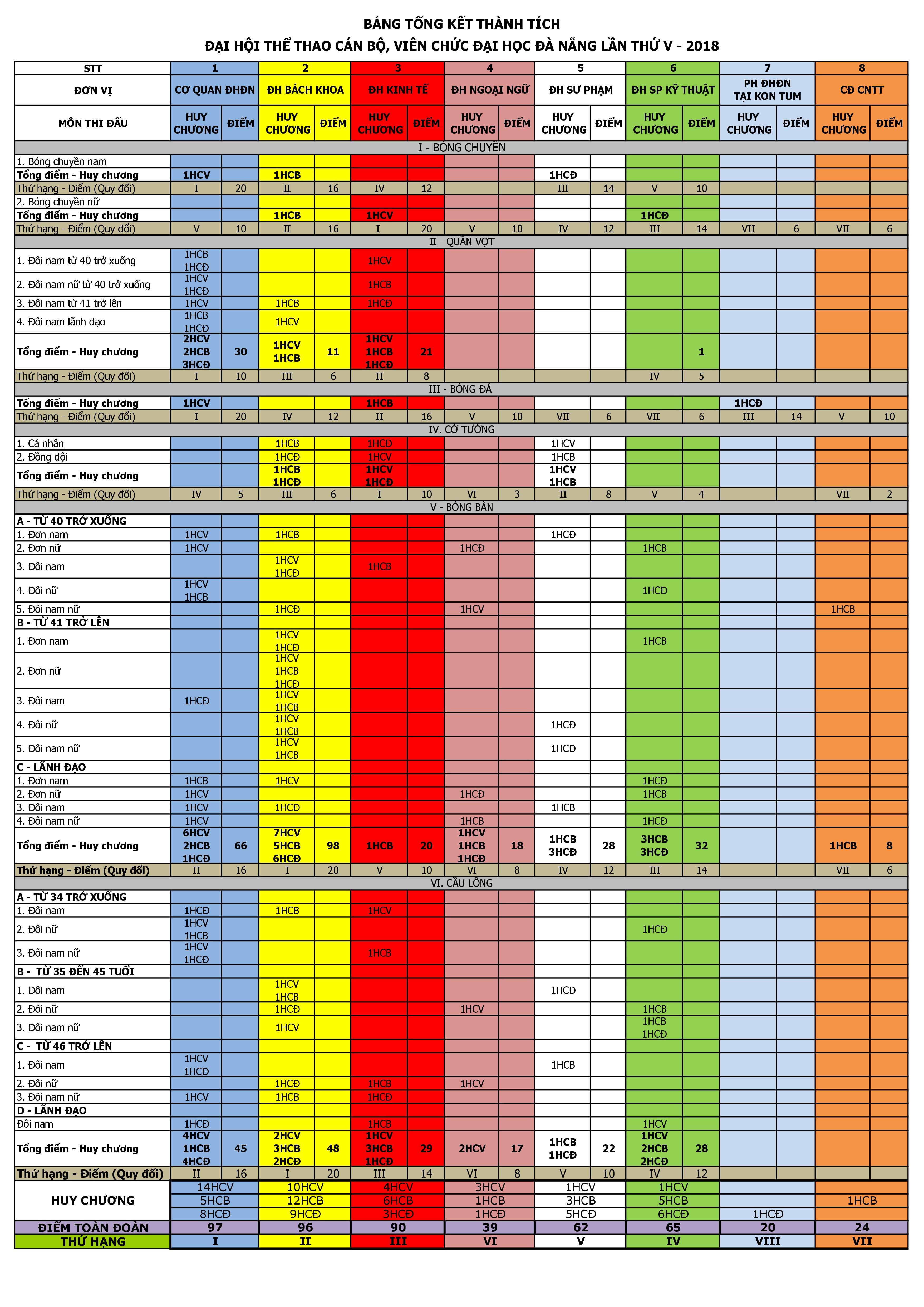 - Bế mạc Đại hội Thể thao Cán bộ viên chức Đại học Đà Nẵng lần thứ V – 2018: Đoàn Cơ quan Đại học Đà Nẵng giành giải Nhất toàn đoàn - (21/05/2021)