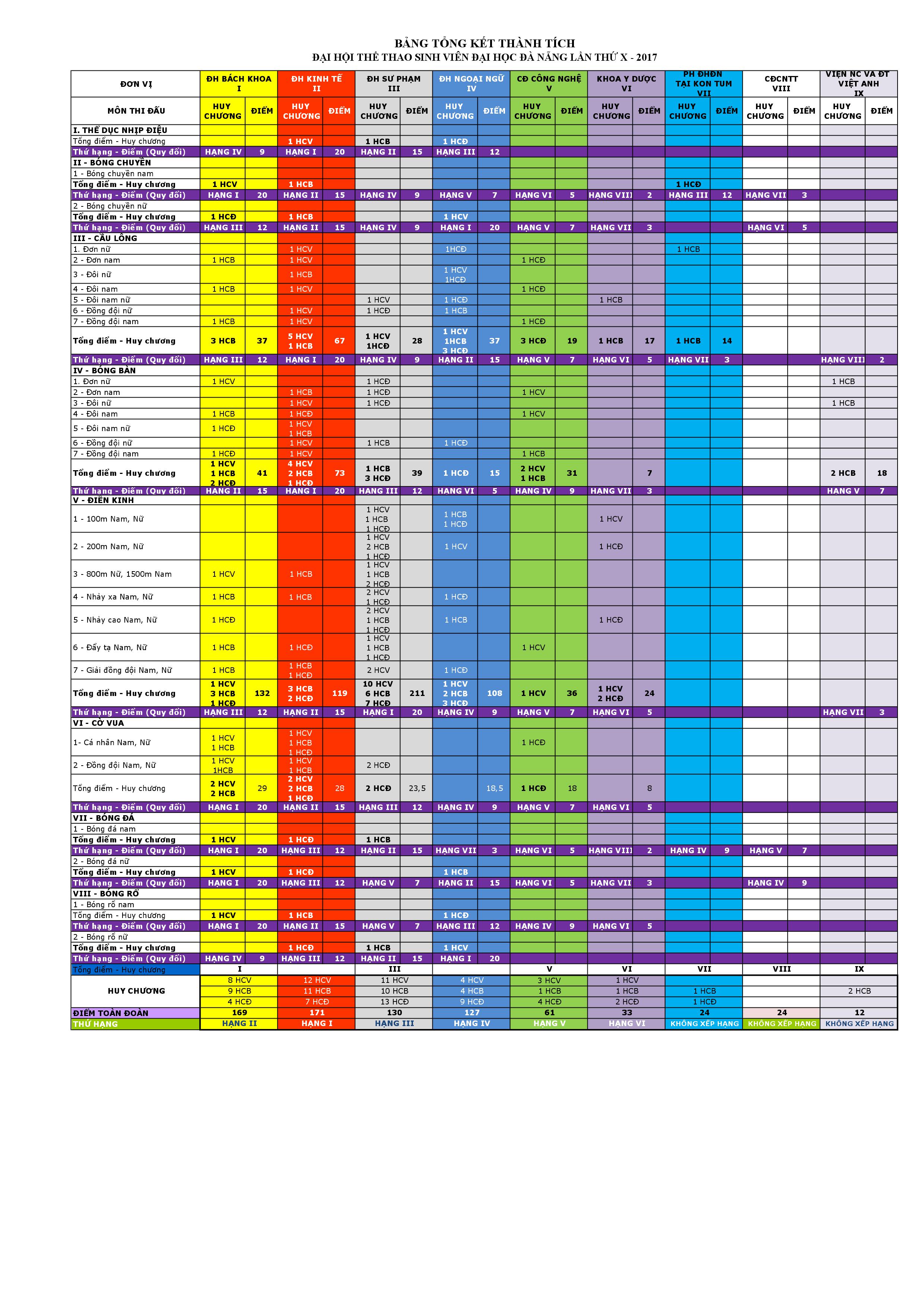 - Đại hội Thể thao sinh viên Đại học Đà Nẵng lần thứ X - 2017 - (12/09/2017)